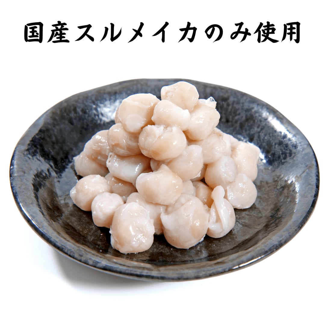 厳選素材:使用するのは国産スルメイカのみ。新鮮で高品質なイカを厳選しています。